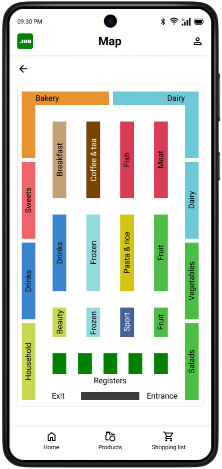 This project is a grocery store product finder app designed to help shoppers quickly locate items in a physical supermarket. Users can search for products, add them to a shopping list, and generate an efficient in-store route. The app aims to reduce frustration and save time, especially when shopping in unfamiliar stores.