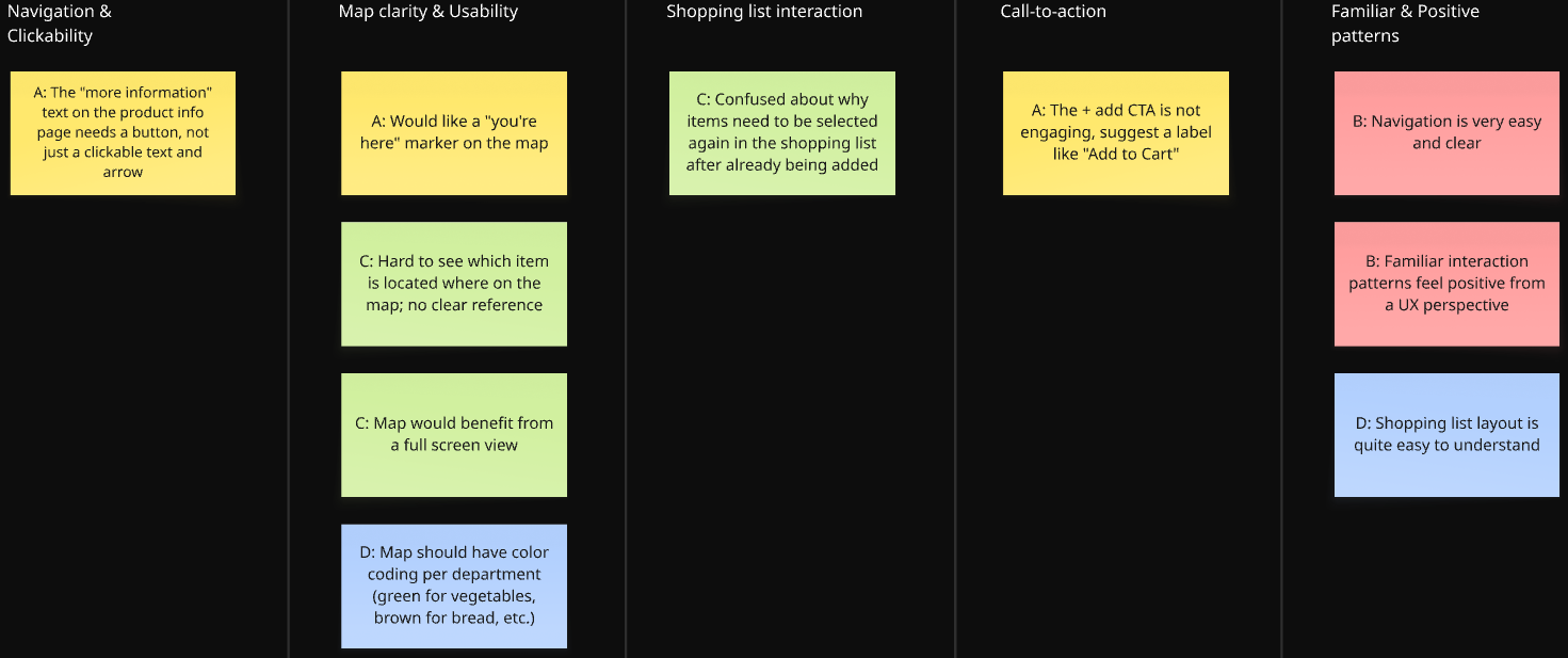 Finally, if this had been a real project for an actual supermarket chain, I would have ensured that the usability study participants were existing customers of that specific supermarket. Testing with users who are already familiar with the supermarket would have produced more relevant and actionable feedback than testing with general supermarket shoppers.