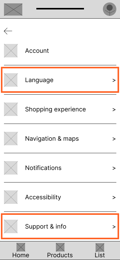 Action: Users need the ability to change the app language to feel confident and comfortable using the app in-store.